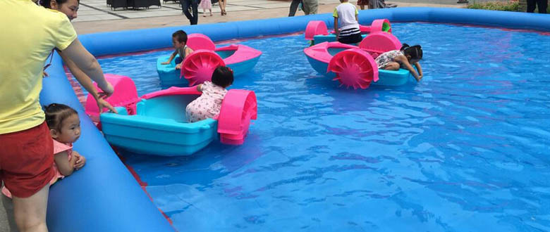 China Paddler Boats can only be used in shallow water areas or inflatable pools, and the water depth must be at least 20 centimeters. A common form of amusement in mobile water parks such as parks, swimming pools, and scenic areas during summer is favored by children and parents for its safety and fun.
